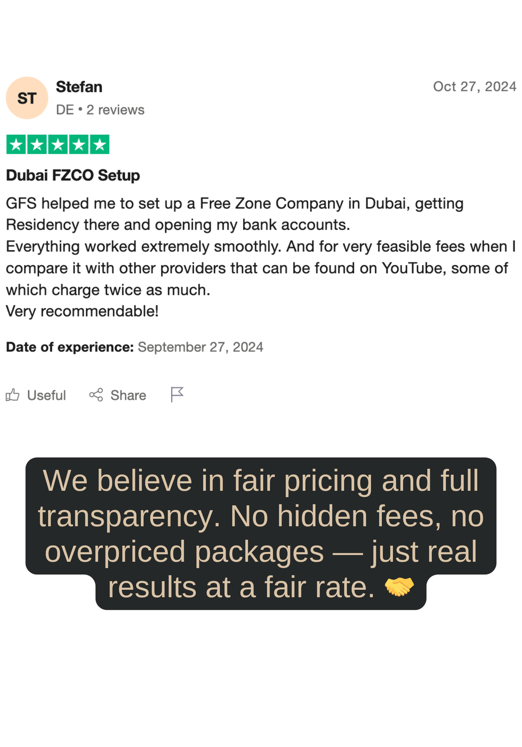 Our pricing depends on your specific situation and the services you need (company formation, banking, residency, tax optimization, etc.). We believe in transparent, all-in pricing with no hidden fees. After your free consultation, you’ll receive a clear proposal so you know exactly what to expect before moving forward.