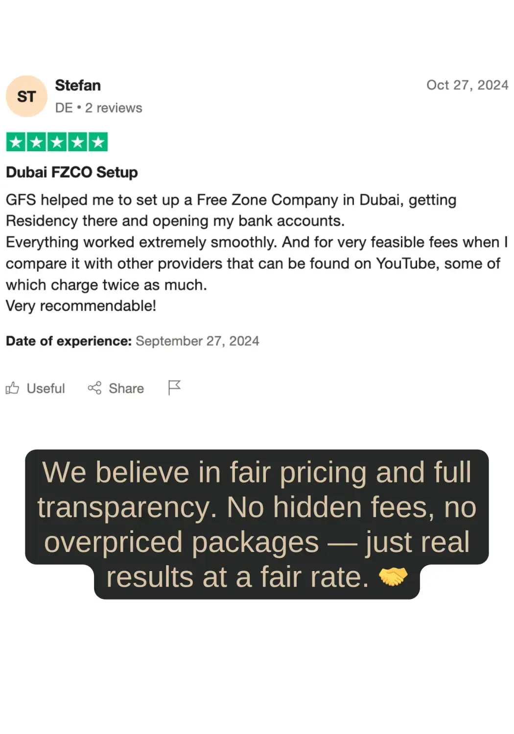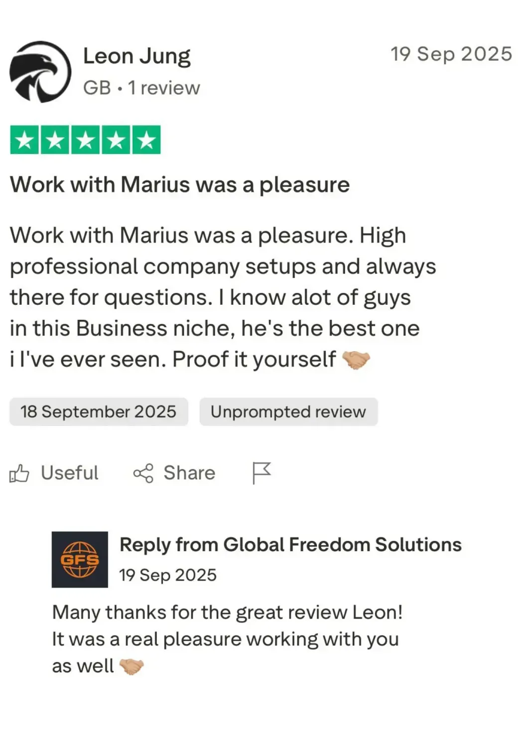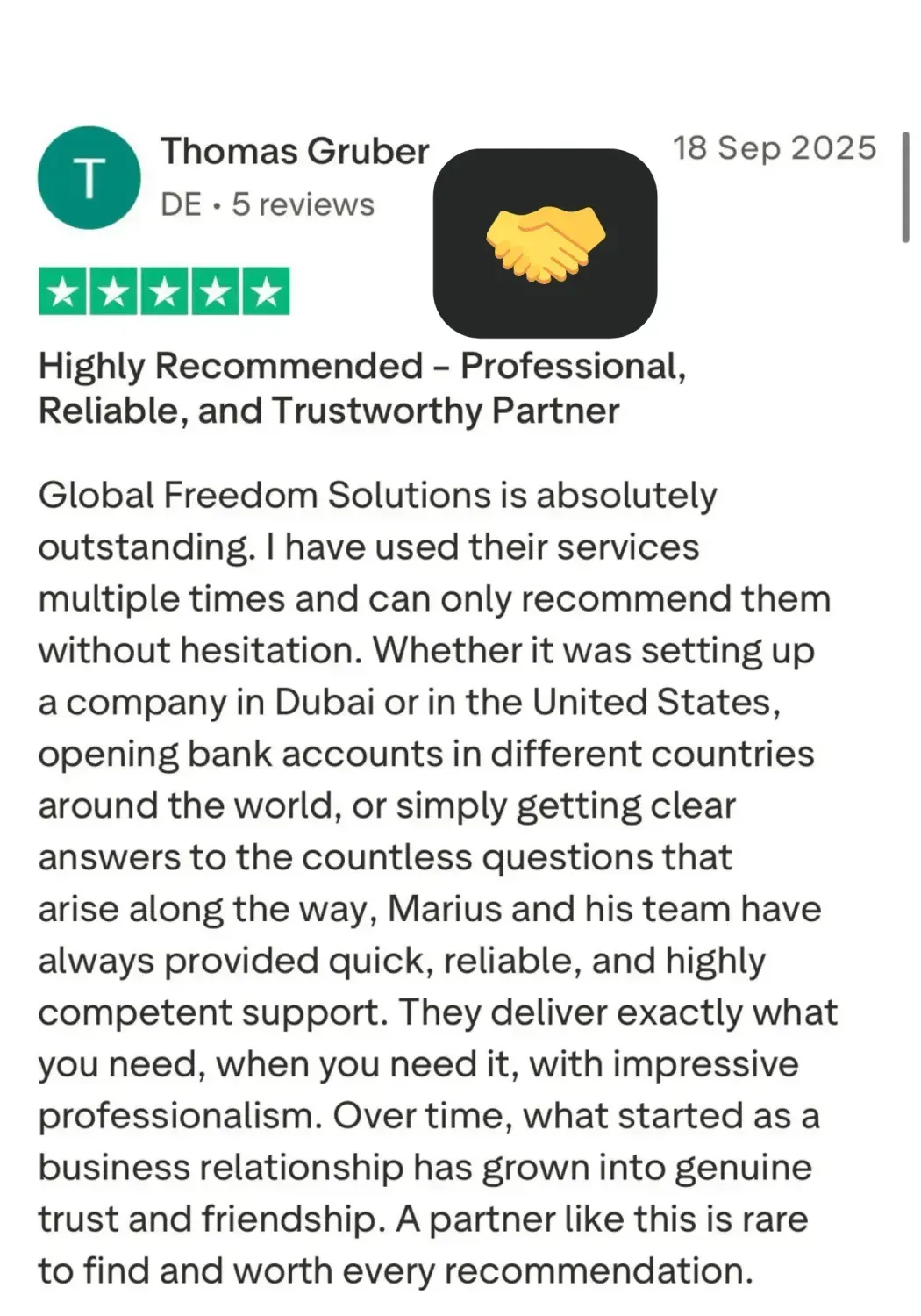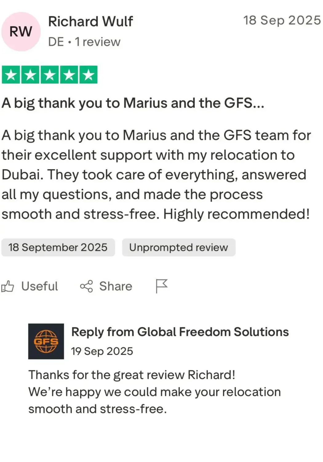 Marius has also lived full-time in Dubai for over 2 years and has personally helped set up more than 180 companies in the UAE. He and his experienced team know the system inside out – from the right legal setup to banking, residency, and compliance.